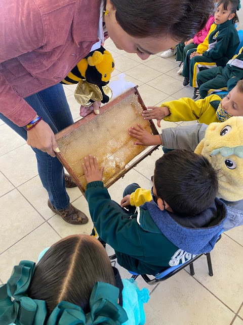 Niños del preescolar "Saturnino Herrán" de la comunidad de San Miguelito, participaron en la exposición sobre le cuidado de las abejas y sus contribuciones en el medio ambiente, mismo que estuvo a cargo del departamento de Desarrollo Agrario de la Secretaría de Desarrollo Agrario Territorial y Urbano (SEDATUM), de Jesús María.