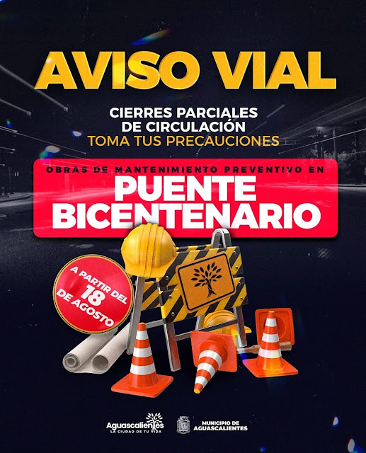 La noche de este domingo 18 de agosto, el presidente municipal Leo Montañez puso en marcha nuevos trabajos de mantenimiento en el puente Bicentenario, por lo cual se realizarán cierres nocturnos a la circulación vehicular durante las siguientes semanas.