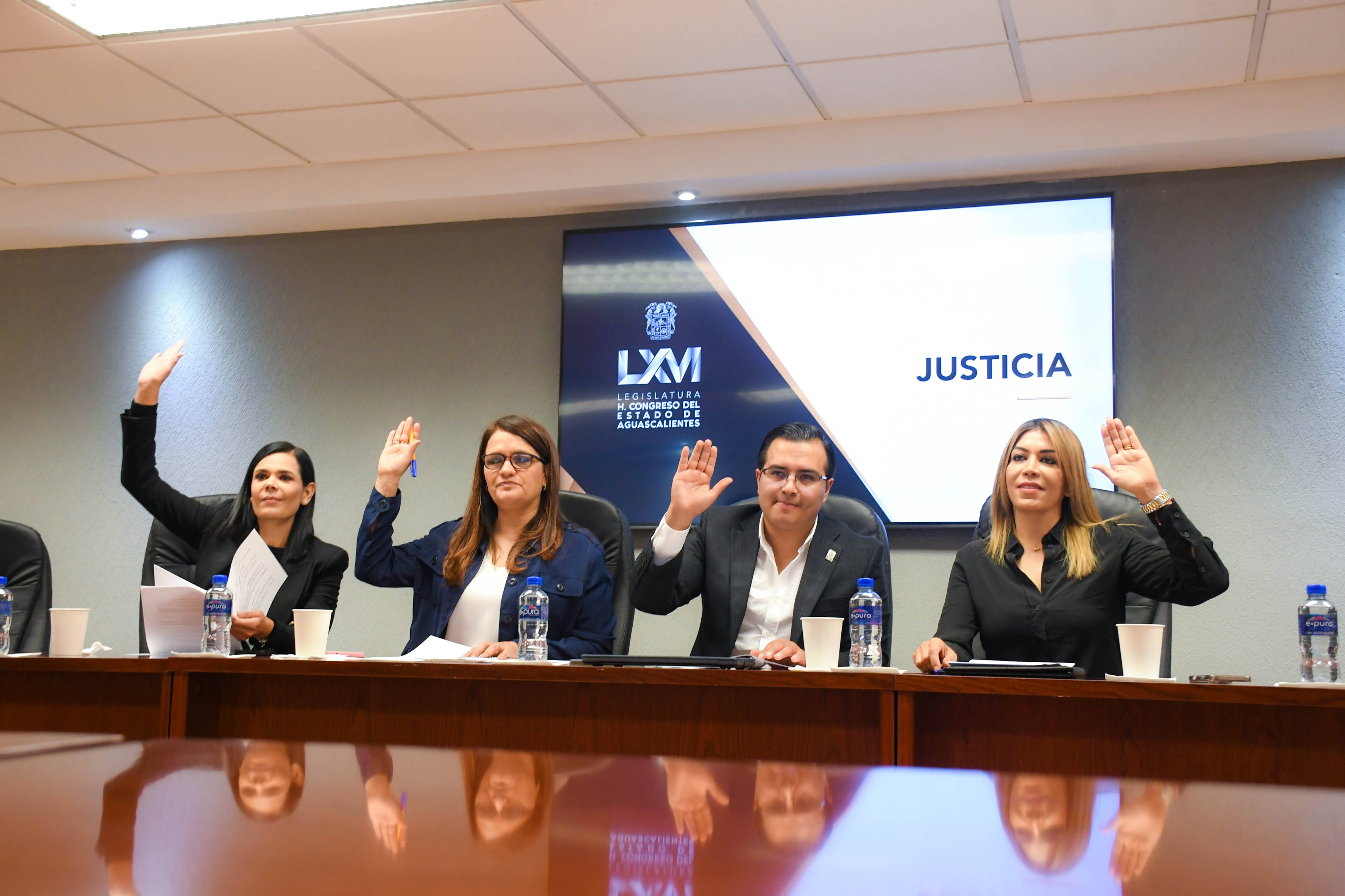 Se realizaron los trabajos de la sesión ordinaria de la Comisión de Justicia de la LXVI Legislatura del Congreso de Aguascalientes, que preside el diputado Rodrigo Cervantes Medina, quien en conjunto con las y los congresistas integrantes Alma Hilda Medina, Nancy Gutiérrez, Yaszú Muñoz y Maximiliano Ramírez, aprobaron reformas a los Códigos Penal y Civil del Estado.